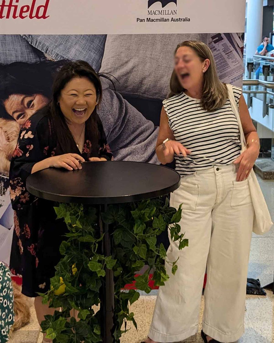 There was the Brisbane signing where I had to wear a PJ top due to a DIY roots hair dye explosion in the suitcase…. Here I am, looking mildly concerned to find myself in a position going to a public event in the only clean top I had.