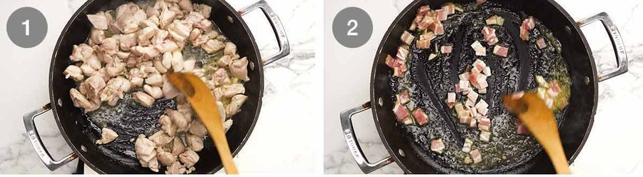 I had a seniors moment and bought chicken breast fillets which I then poached in chicken stock for 10 mins and when cooled, shredded the meat. The pie was sensational- thank-you for such a fab recipe- loved it all.