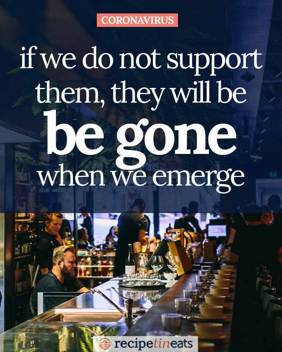 Many restaurants are providing take out and I’m sure they have support of fans but yours was a timely reminder to go the extra mile/kilometre to help them. Thousands of hospitality staff are without jobs, tragic.