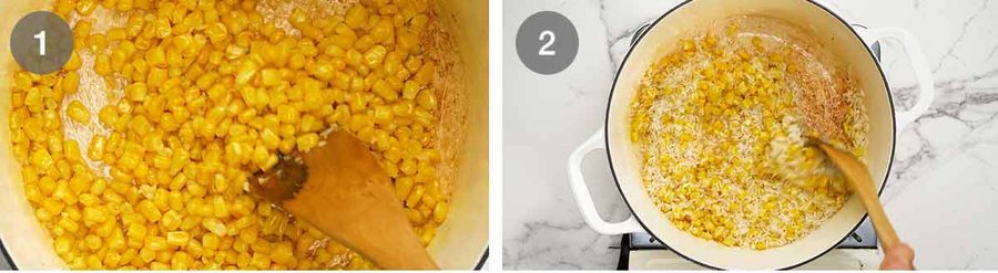 Made this today. Very nice. I was concerned about the rice cooking all the way but the resting time let it steam. I like that this combination of rice and corn make a complete protein. Good vegetarian menu item. I followed the recipe except I used a large can of drained and rinsed corn.
