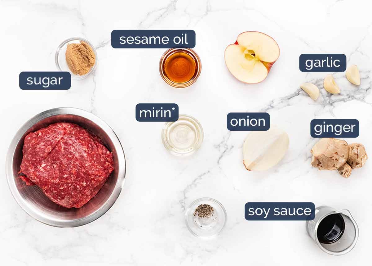 Beef – I’m using beef mince today, because Bulgogi is made with beef. But this marinade would be brilliant with any ground meat (chicken, turkey, pork, lamb).
