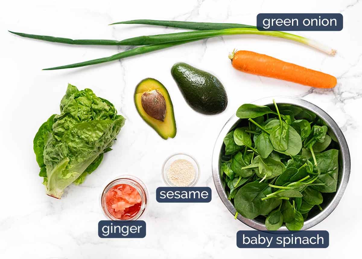 - Assemble – Spoon beef over rice, place spinach and carrot. Top with pickled ginger and a dollop of mashed avocado. Tuck lettuce down the side. Sprinkle with sesame seeds and green onion. Serve with sauce for drizzling all over everything before jumbling it all up and digging in!