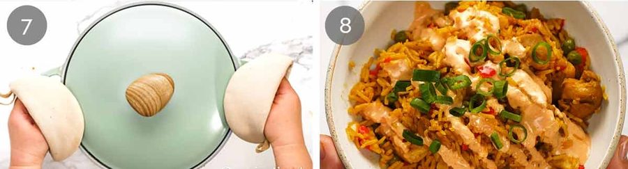 Also, side note, this reheats very well! Being a fluffy-rice dish like biryani, it doesn’t congeal into a block of rice when cool. If the rice seems a little dry, just sprinkle with water before covering to reheat and it will steam back to perfection.