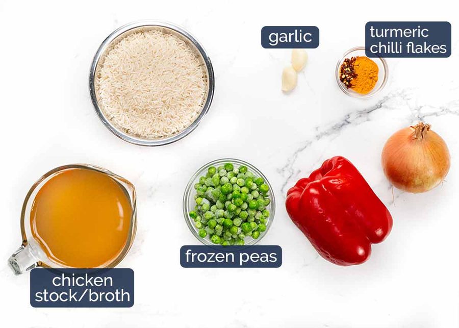 Onion, garlic and red capsicum (bell pepper) – The vegetables and aromatics that add tasty flavour into this rice. Don’t skip these!