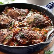 Absolutely beautiful dish and lovely flavours. Great alternative to cacciatore that is my staple with this cut of meat. I cooked it on an induction cooktop because I don’t have an oven at the moment. I found that I had to cook my chicken thighs (bone in) for about an hour, not 35 mins as suggested. Maybe they were larger than those used by testers or maybe I used lower cooking temp on the cooktop? Anyway, can definitely recommend this lovely dish served with basmati rice. So glad I found it.