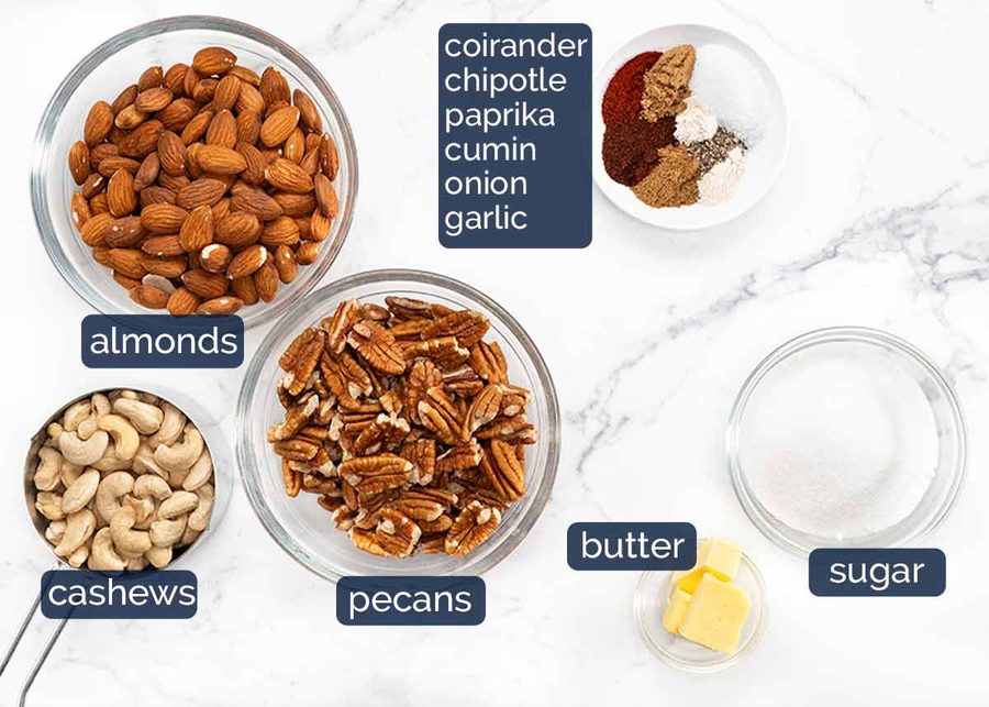 Other nuts: I’ve done this with mixed nuts, single types (pecans = fave), and everything in between. I wasn’t a huge fan of pistachios with the spice mix, and Brazil nuts are a bit chunky for my taste. But really, go with what you love!