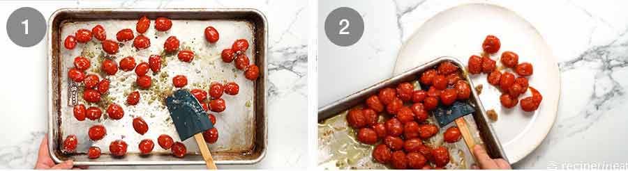 Transfer – Then gently transfer the tomatoes to a serving plate, in a single layer.